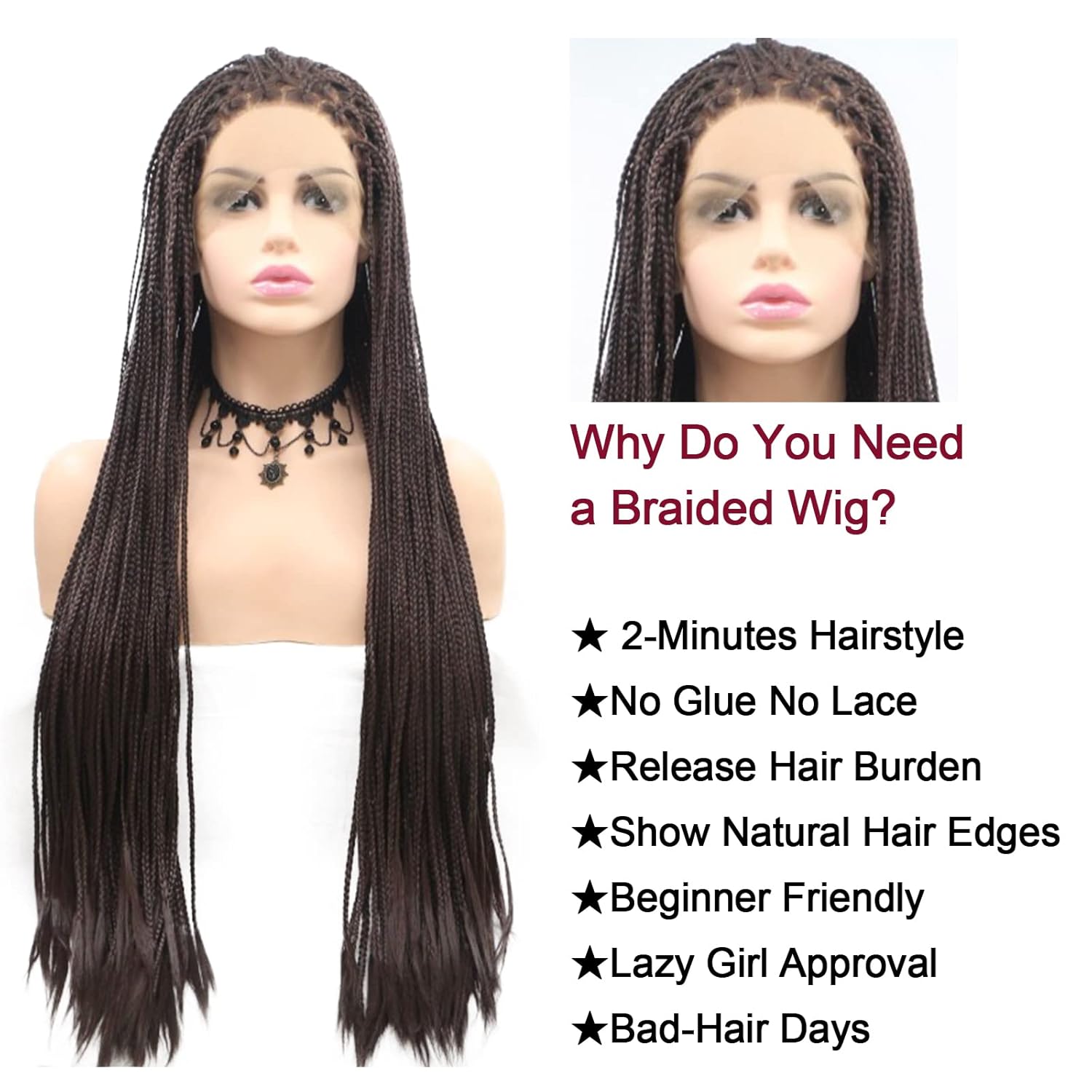 【Extra Stable Wig Cap】 It is the new style everyone is getting knotless braided hairstyles so instead of sitting for countless hours. The upgrated stretch band and combs inside the lace front braided wig are ready for extra support, you will never worry about the wig falling or shifting, make it easy to slay for all day use