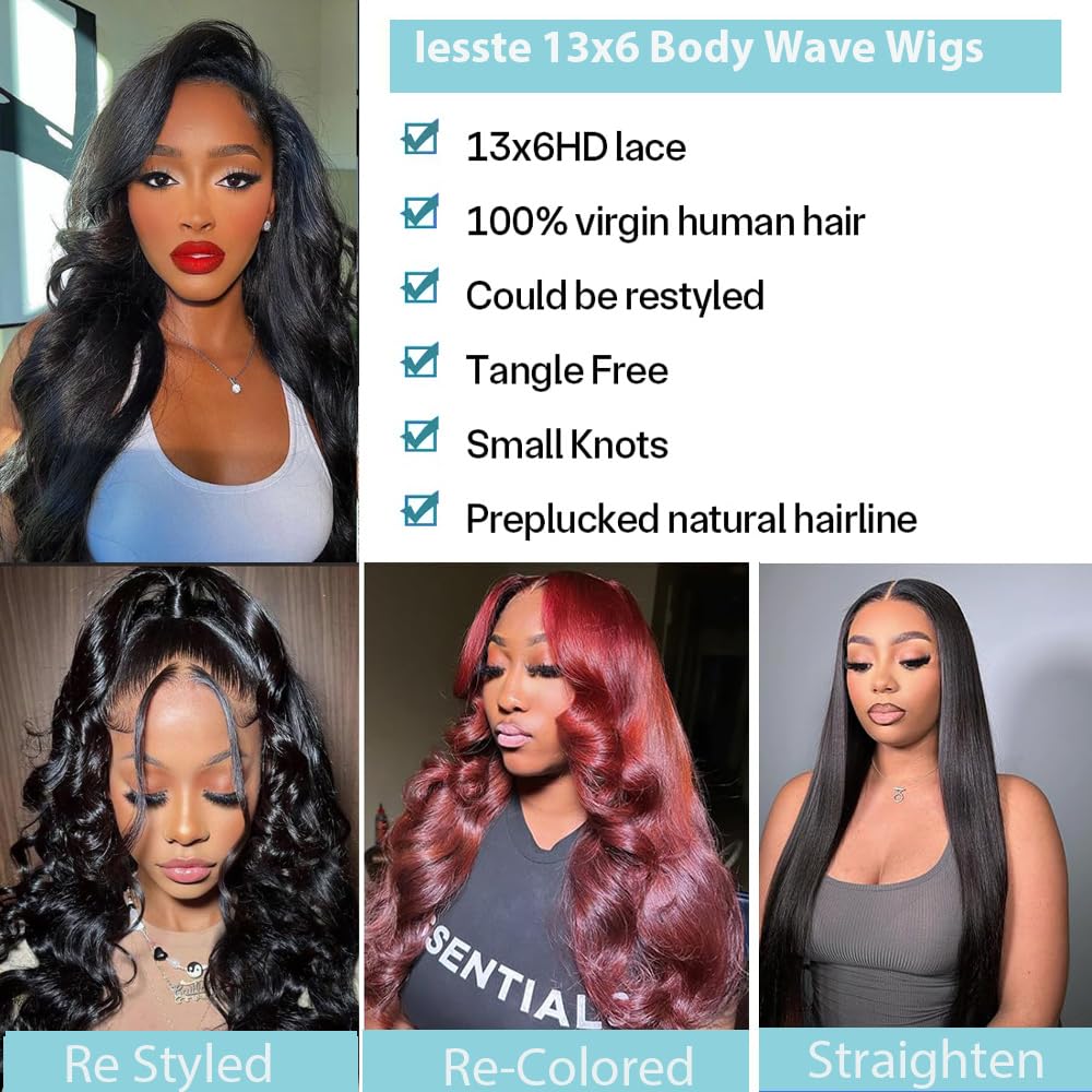 Body Wave Human Hair Wig Suitable Scene : All Scenes Can be Applied, Daily Life, Birthday, Travel, Party, Dating, Graduation.13×6 Body Wave 100% Brazilian Virgin Wig, Superior Quality, Durable, Can be Used as a Gift for Family and Friends.