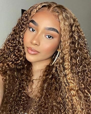 9 reviews for Chesma 28inch Highlight Ombre Lace Front Wig Human Hair 13×4 HD Honey Blonde 4/27 Deep Wave Lace Frontal Wigs Glueless Wigs Human Hair Pre Plucked with Baby Hair 180 Density