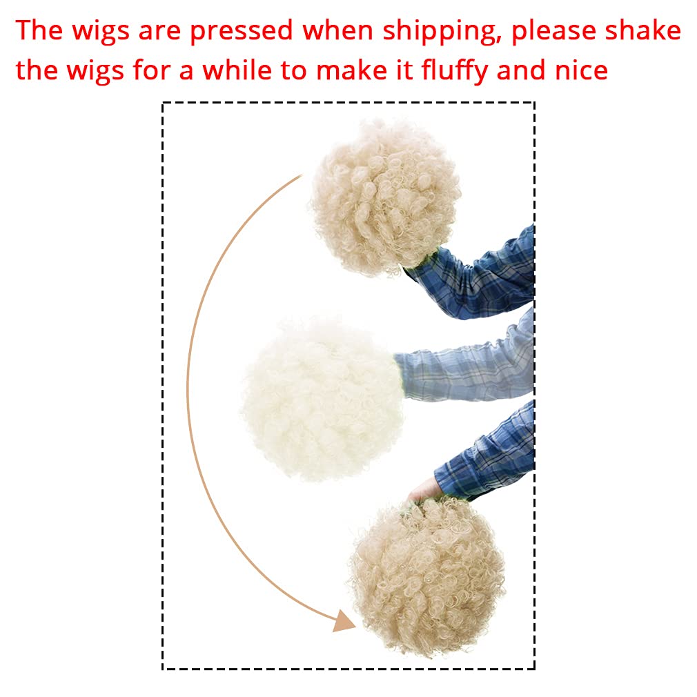 Item Specification Color: Golden Material: Heat-resistant synthetic fiber Style: Curly disco afro wig User: Unisex Product weight: 120g