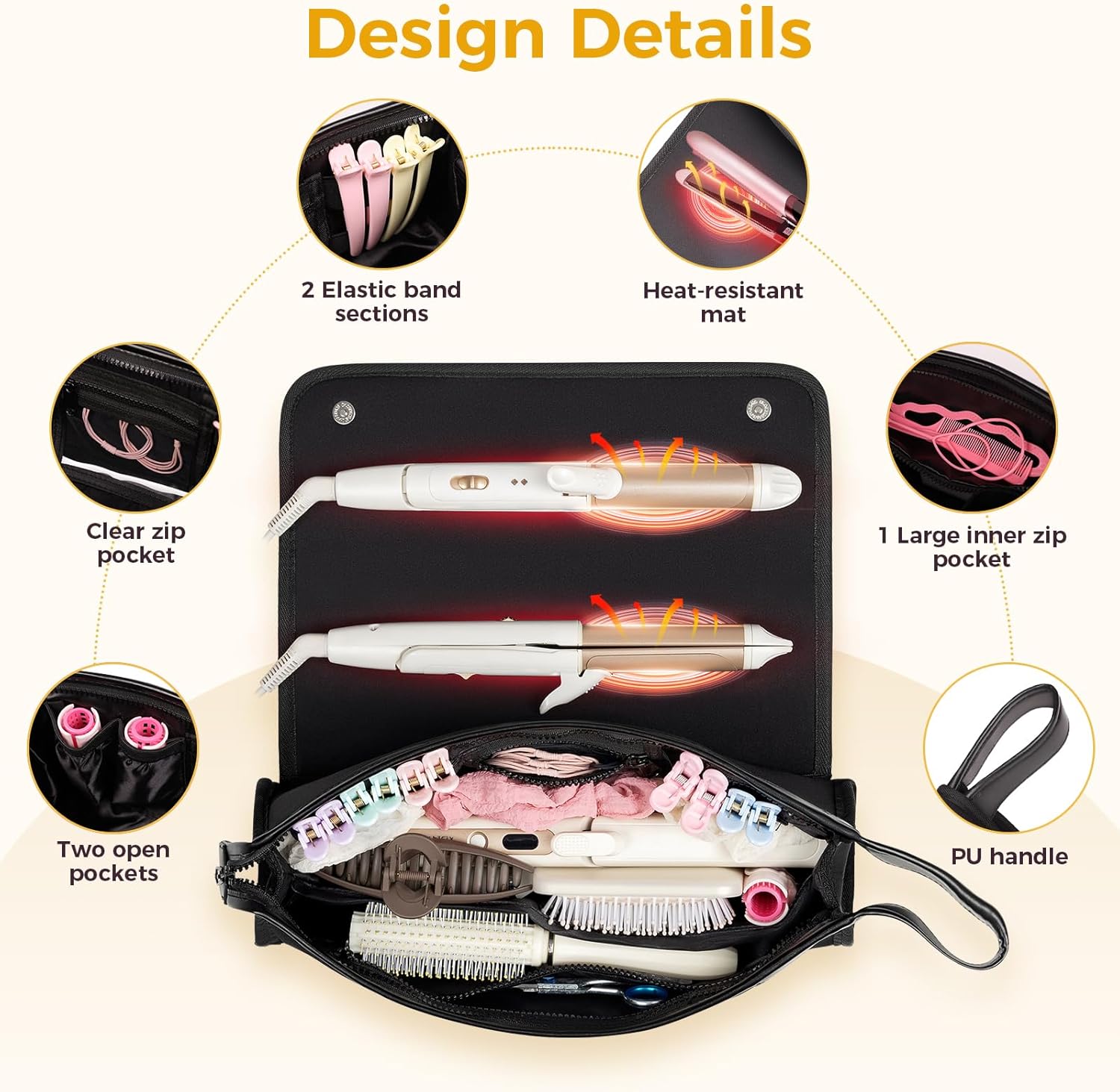 【2-in-1 Spacious Hair Tool Daily Bag】Experience the luxury of space with this innovative 2-in-1 daily bag, ideally designed to accommodate all your daily hair care accessories including straighteners, curling irons, and various styling tools. Doubles as a makeup bag, it organizes smaller items like combs, hair bands, clips, and other hair accessories and makeup brushes seamlessly, keeping your beauty products orderly