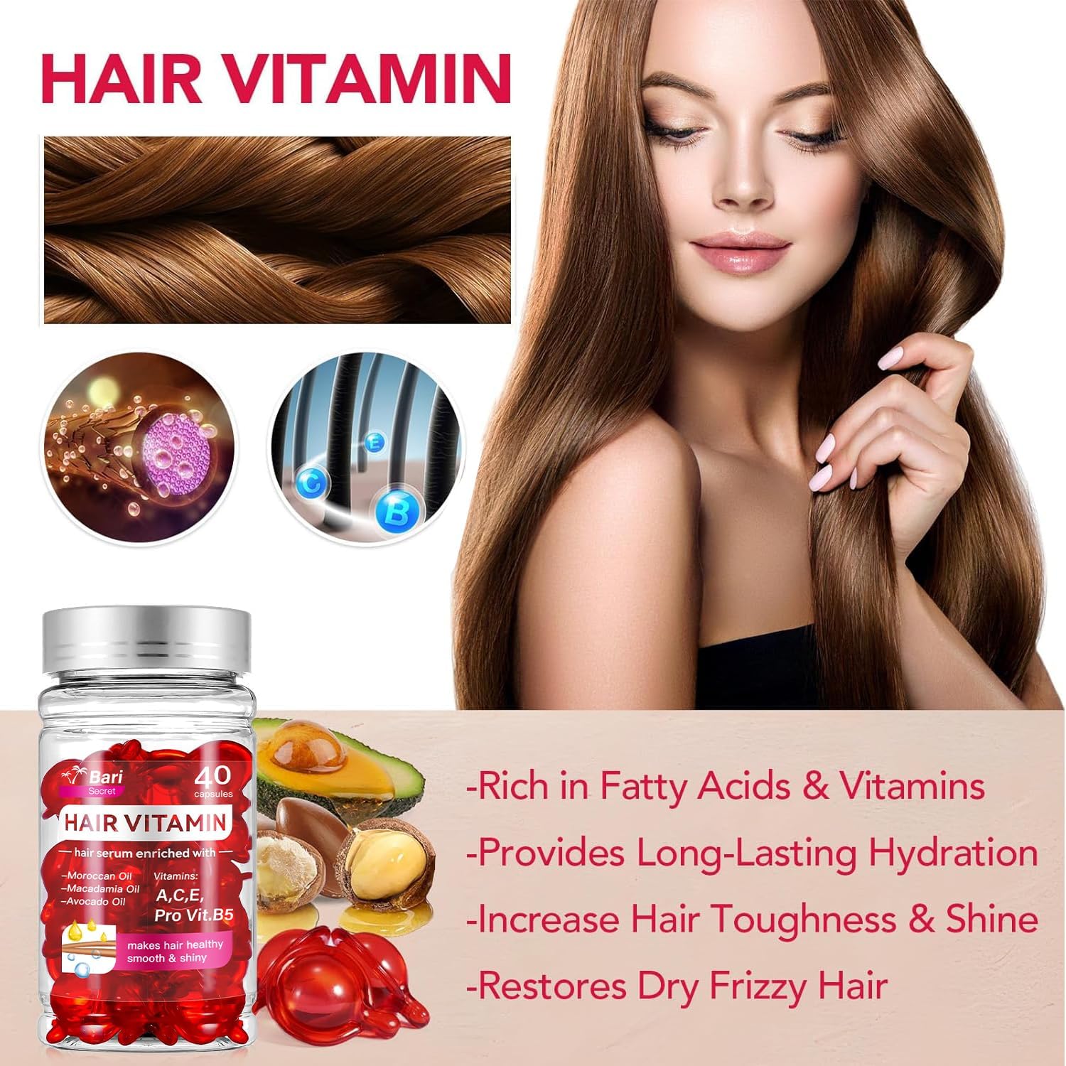 Hair Vitamins Treatment Oil Capsule – no Rinse with Argan Macadamia Avocado Oils – Vitamins A C E Pro B5 – Hair Serum Oil Capsule for Women & Men – 40 Capsules, Red