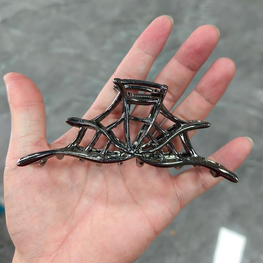 Metal Hair Clips with Spider Web Claw Design – Strong & Neutral Black Exquisite French Luxury Hair Accessories for Women and Girls, 1 Pack Large